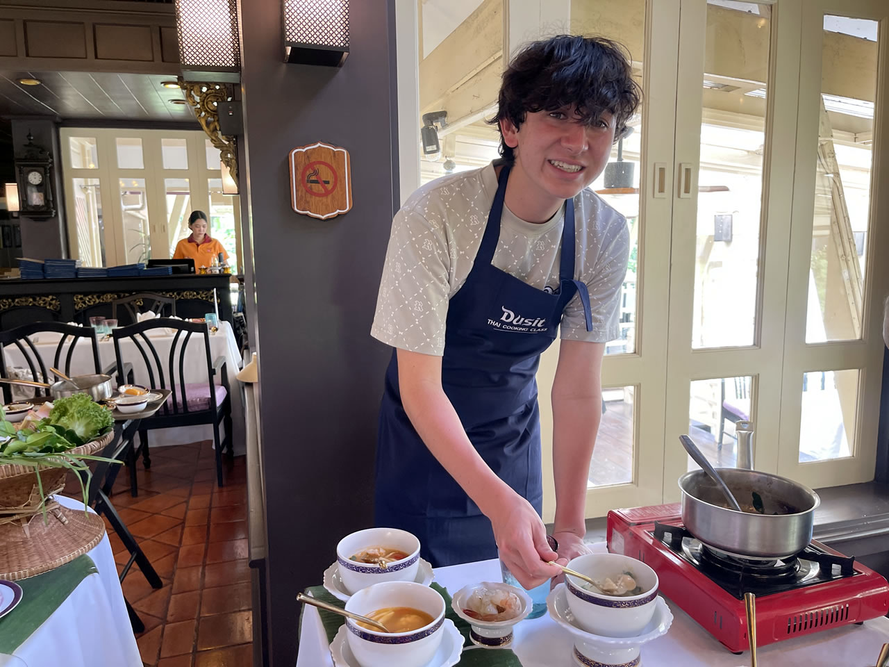 We had a cooking station per two people, complete with an induction cooktop, pots, and pans, and all the fresh ingredients required. As we were taught how to prepare each dish, the chef explained in detail each ingredient, and why it was included in the dish.