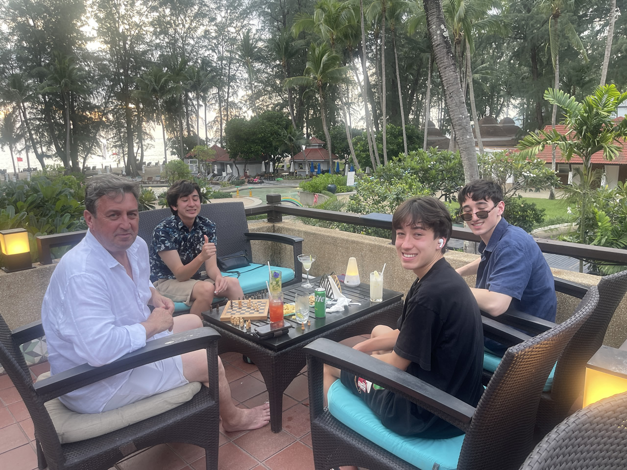 We enjoyed our nightly cocktail hour on the balcony at the Horizon Club, watching the stunning sunset listening to the live band and played chess before heading out to dinner.